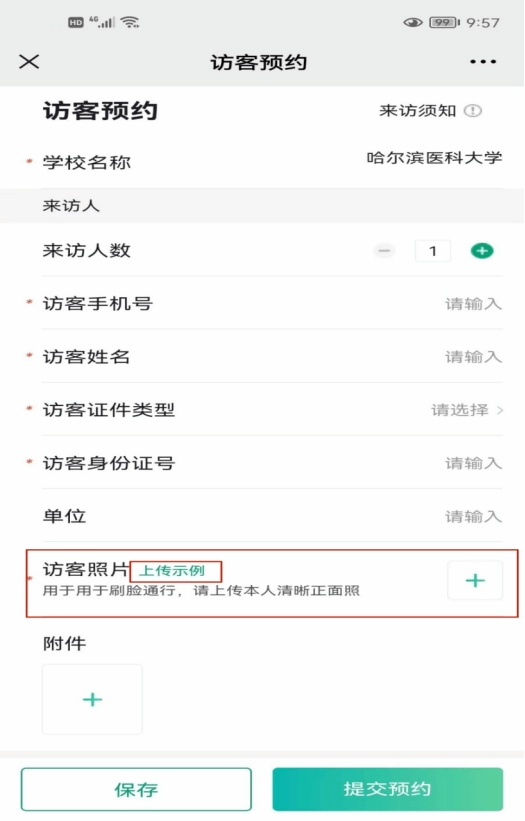 4.提供访客照片(如有操作问题可点击“上传示例”),如下图所示。