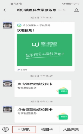 办理临时入校,通过“哈尔滨医科大学服务号”,由入校人员发起,校内被访问人(学生是导员)审批即可。