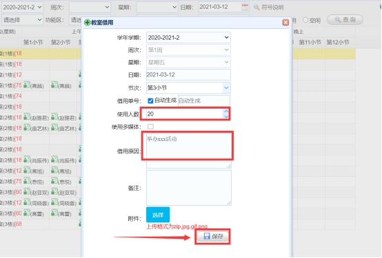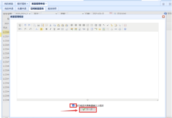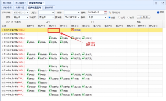 2、点击需要借用的节次时间(空白节次区域代表可借用)