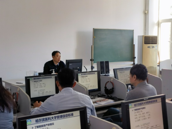 杨迎春老师介绍并了学校出台的“哈尔滨医科大学数据管理办法”及“哈尔滨医科大学管理信息标准”,这两个文件明确了数据的生产、管理、存储、共享及安全方面的要求与实施方法,重点解读了统筹管理、一数一源、安全可控、及数据标准的使用等核心内容。