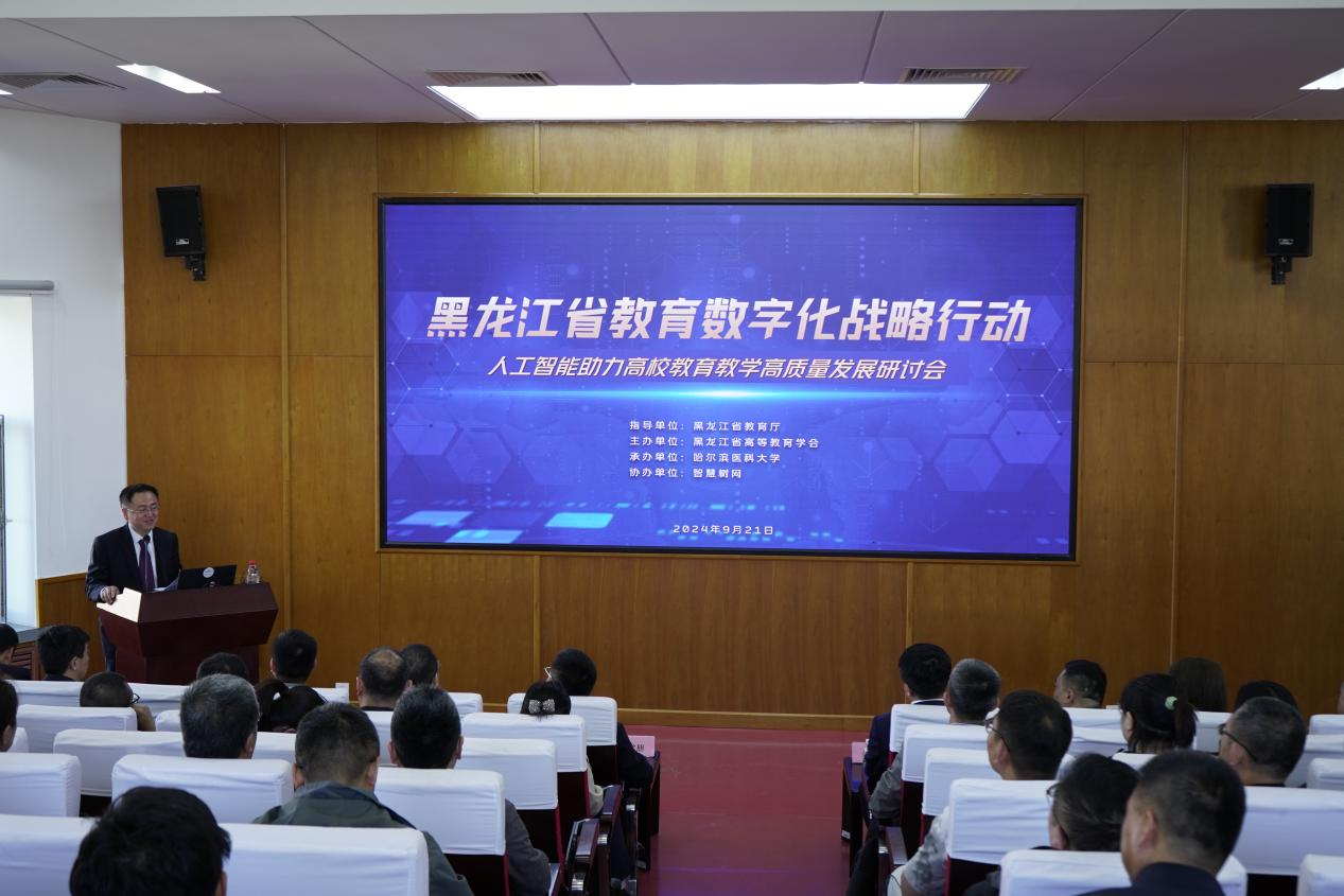 9月21日“人工智能赋能高校教育教学改革发展研讨会议”在我校附属肿瘤医院成功举办。会议由黑龙江省教育厅指导,黑龙江省高等教育学会主办、哈尔滨医科大学承办、智慧树网协办。省内48所高等学校的近百名信息化建设部门负责人及相关领域的学者专家参会。