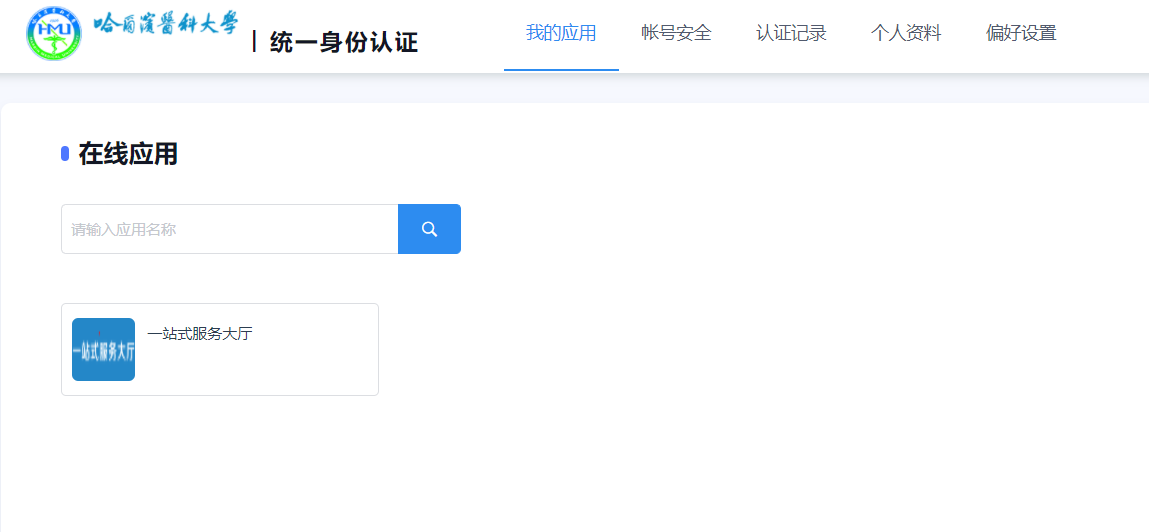 (三)点击我的应用中的【一站式服务大厅】,进入哈医大网上办事大厅。