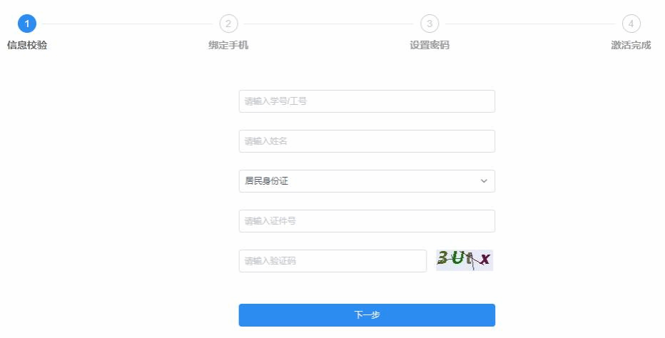 按界面提示填写学工号、姓名、身份证号,并设置登录密码。