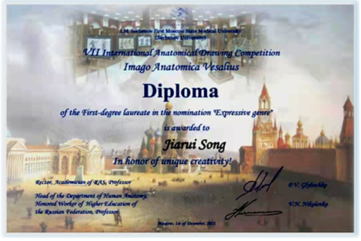 ”VESALIUS“第七届国际解剖学绘画年度比赛。此次解剖学绘画大赛有来自俄罗斯、中国、美国、德国、阿塞拜疆、保加利亚、吉尔吉斯等全球不同国家的近300幅入选参赛作品 。